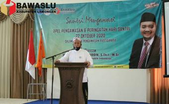 Ketua Bawaslu Kabupaten Lamongan Miftahul Badar memberikan sambutanya dalam acara Apel Pengawasan dan Peringatan Hari Santri Nasional yang diadakan oleh Bawaslu Lamongan di Hotel Mahkota Lamongan, (22/10/2020).